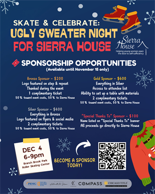 This dynamic networking and fundraising event supports Sierra House, a nonprofit empowering young women to achieve self-sufficiency through housing, education, and community programs. Enjoy great music from DJ Kyle, a special feature from D Will’s SK8 Academy, prizes for the best ugly sweater, and an evening of meaningful connection and fun.