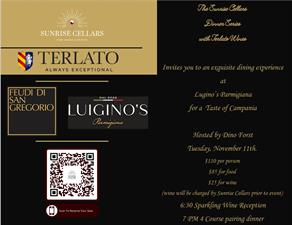 Join us for an exquisite dining experience at Luigino's Parmigiana in Montclair as we celebrate A Taste of Campania - an unforgettable evening of Italian cuisine and world class wine.
